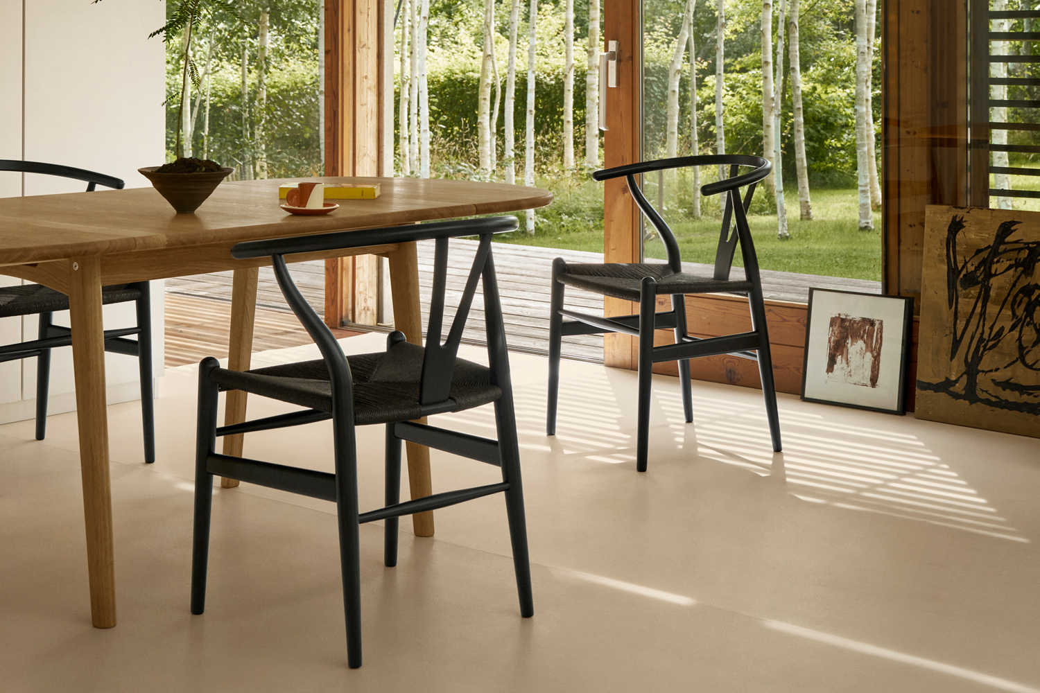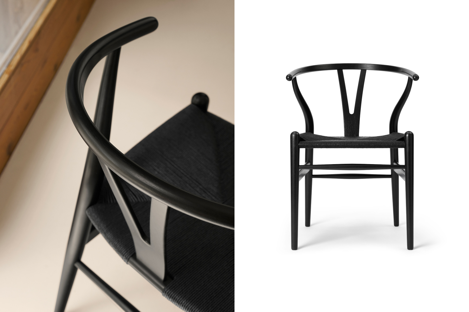 強度に優れたFSC®認証ユーカリ材を使用した、オールブラックの「CH24(Yチェア)」。