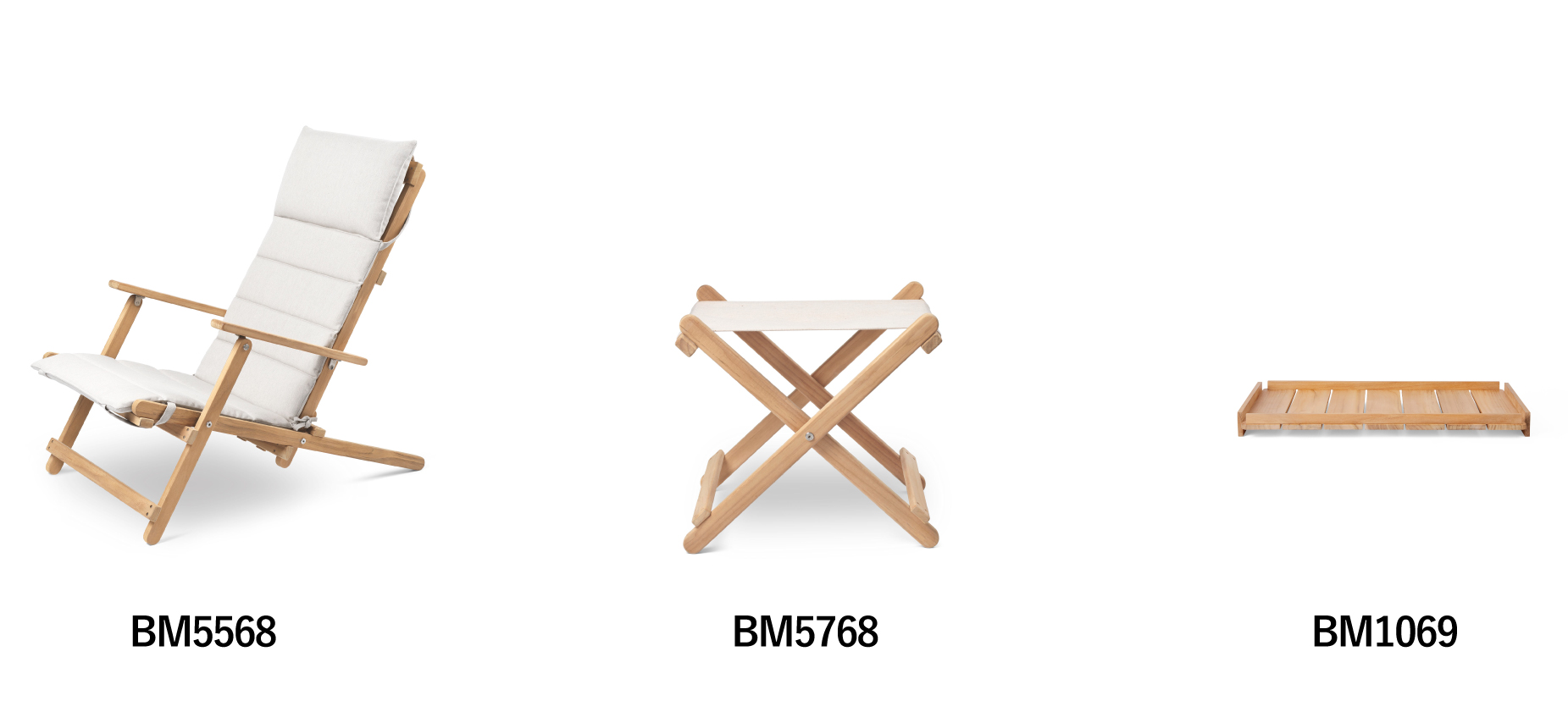 対象となるのは、BM5568 / BM5565デッキチェア、BM5768フットスツール、BM1069トレイの3点セット。