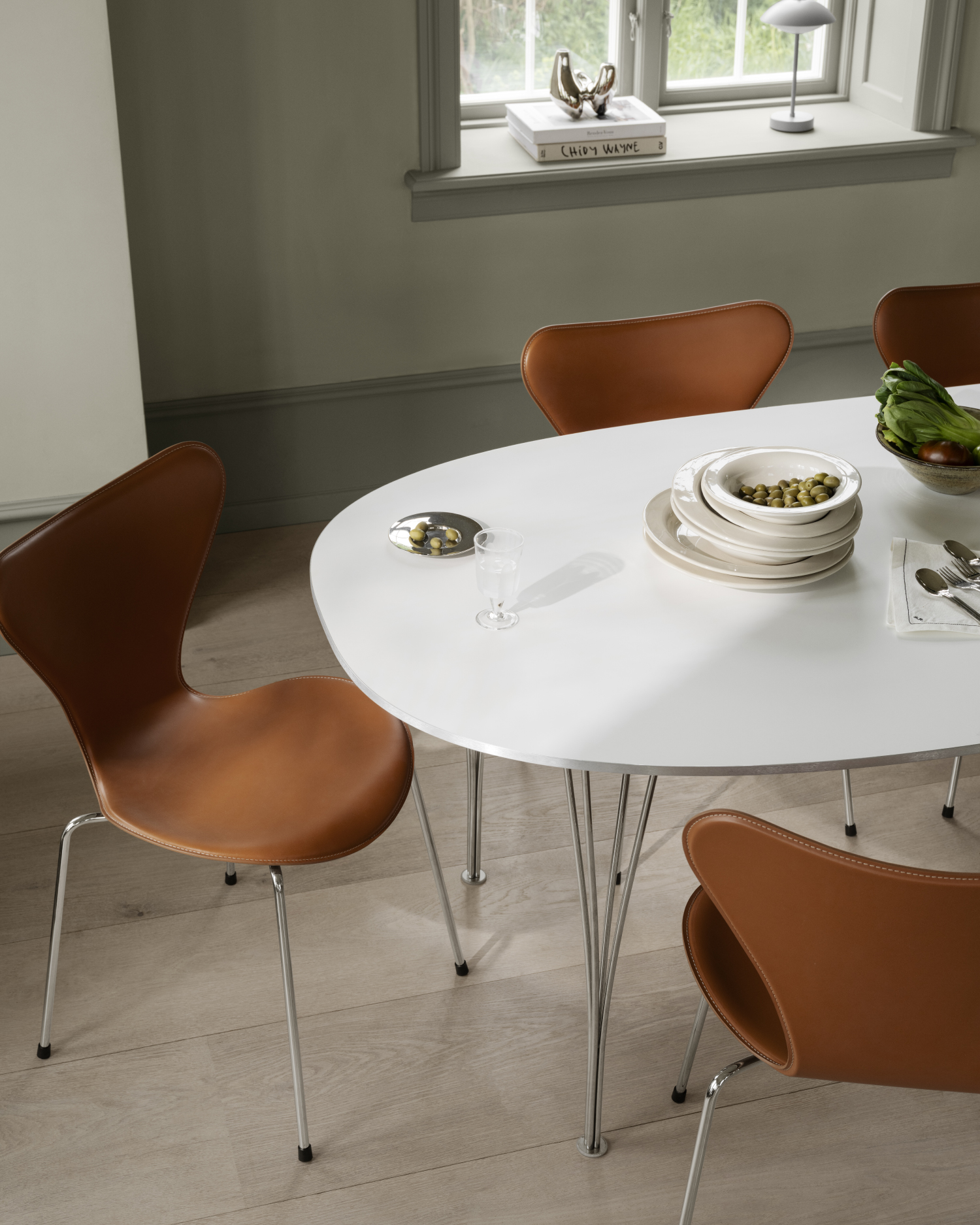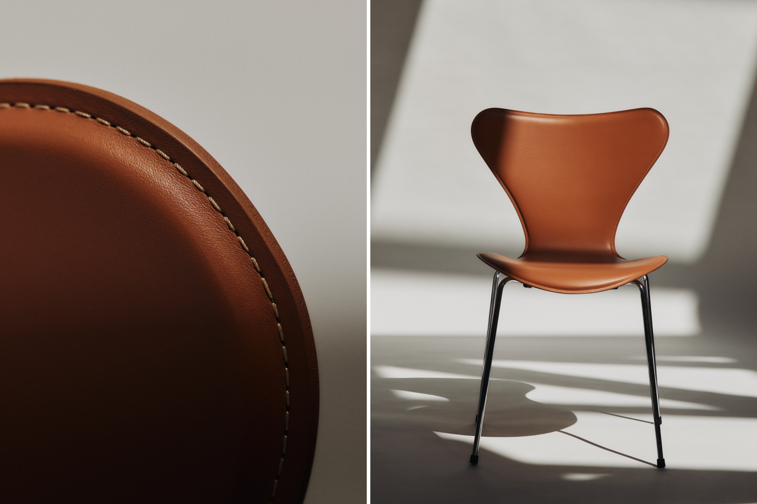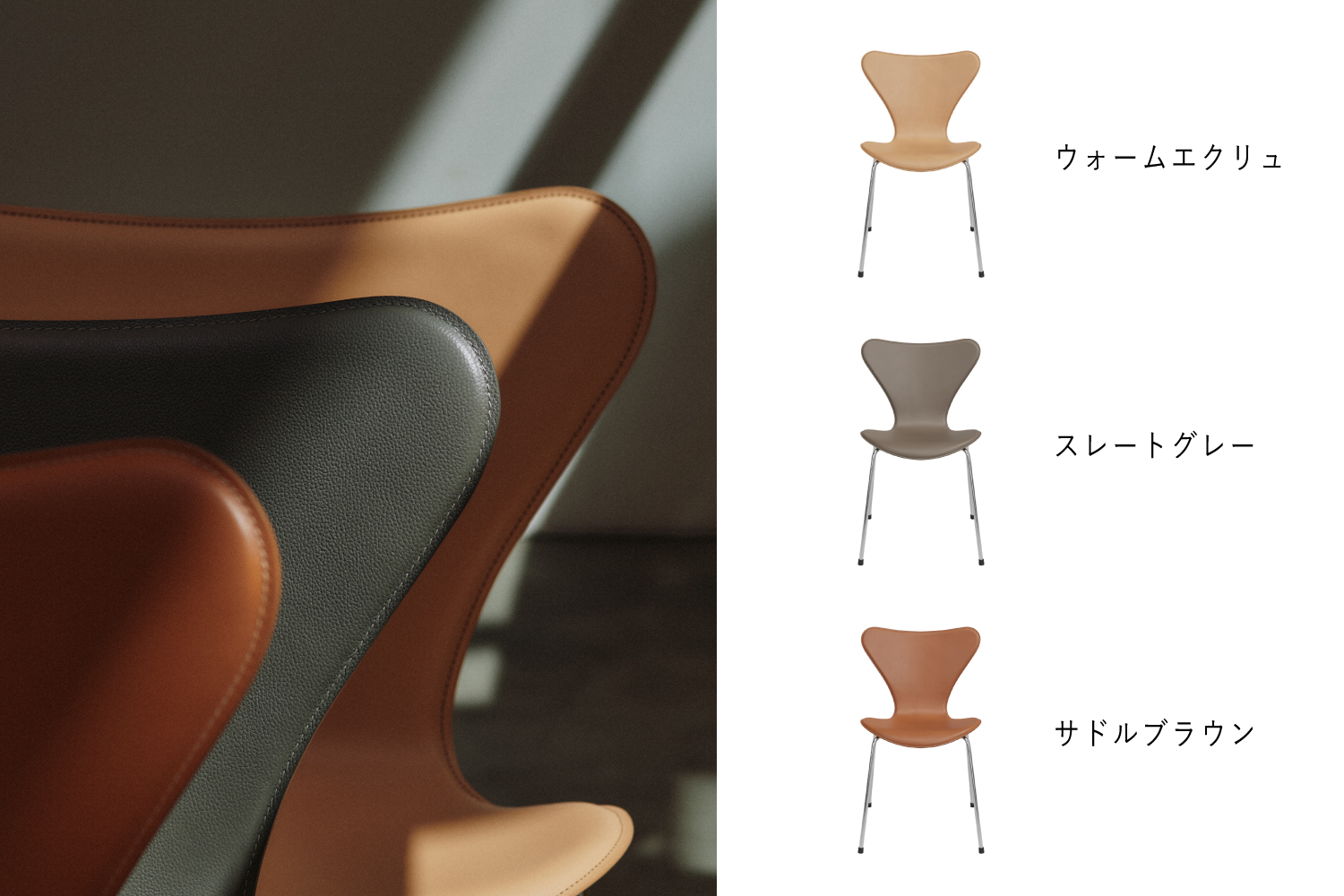 最高品質のハーネスレザーとコントラストカラーの糸を用いたハンドステッチのディテールが織りなすこの特別なチェアは、エレガントな3つのカラーバリエーションで、2026年9月までの限定販売となります。セブンチェア誕生70周年という記念すべき節目を讃える、特別な一脚をぜひお手元にお迎えください。
