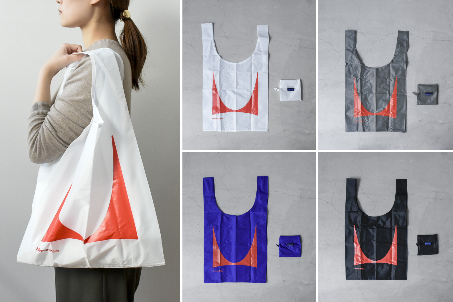 ハーマンミラーオリジナルロゴBAGGUバッグは、ホワイト / グレー / ブルー / ブラックの4色展開です。