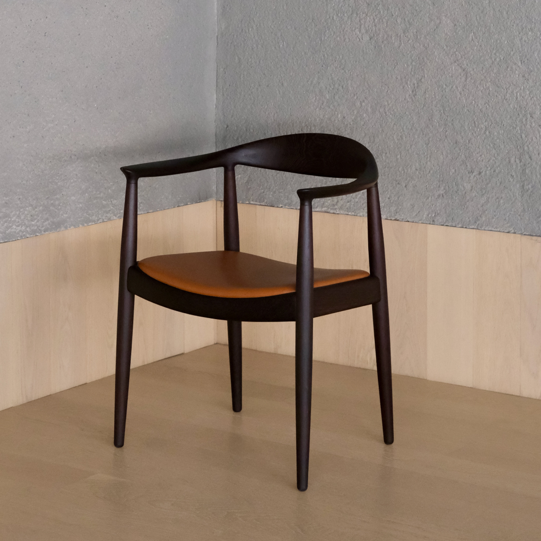 伝統木工とデンマークデザインの本質を体現したラウンドチェア「PP503」。無垢材を贅沢に削り出し、長い乾燥期間を経て丁寧に仕上げられた造形は、静かな美しさと快適さを兼ね備えています。歴史的な討論の場でも使用された、デニッシュモダンを象徴する名作です。PP501との違いは、座面がレザー張りである点です。